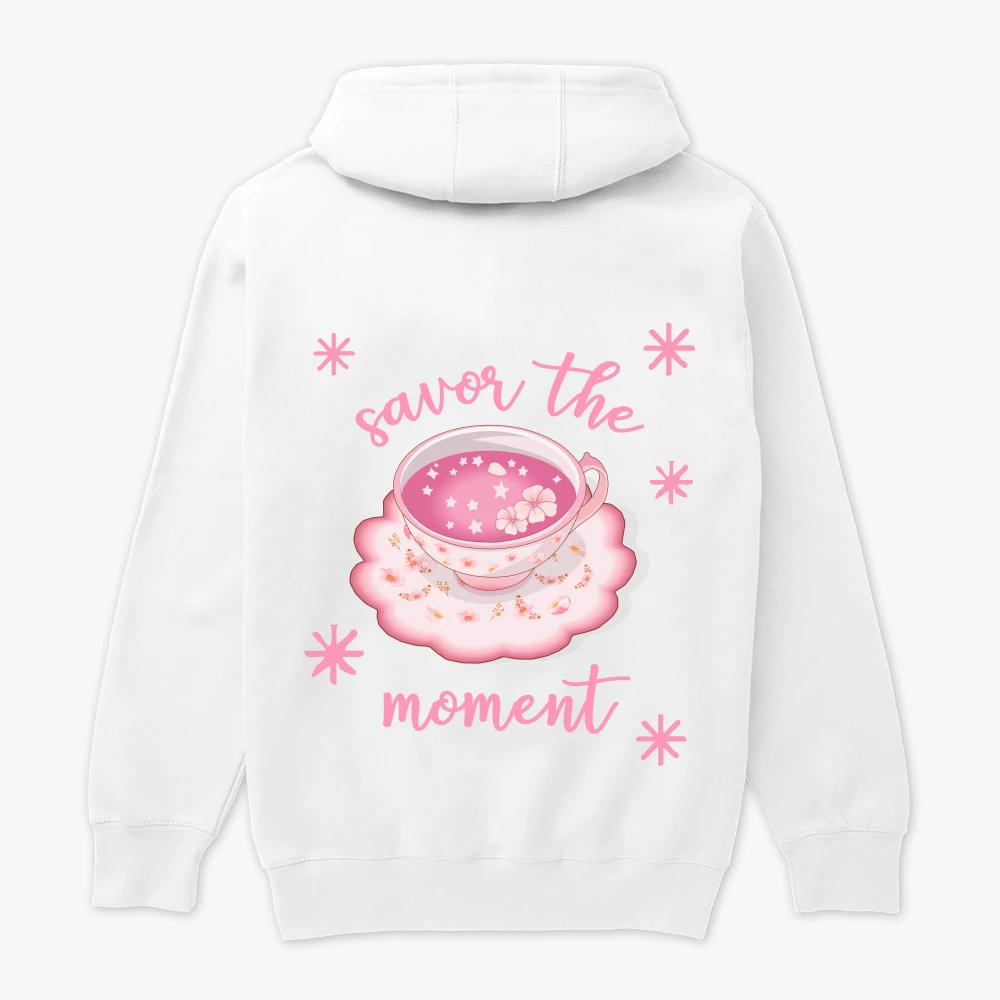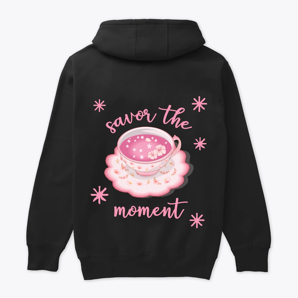 [Fr] Ce hoodie avec le design "Savor the Moment" est parfait pour ceux qui apprécient les petits plaisirs de la vie.Que ce soit pour une soirée cosy à la maison ou une sortie décontractée, ce hoodie est un incontournable.