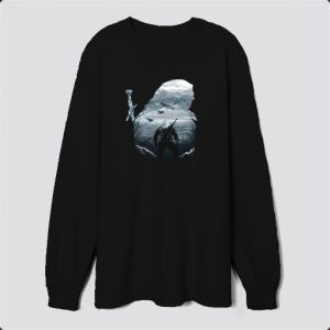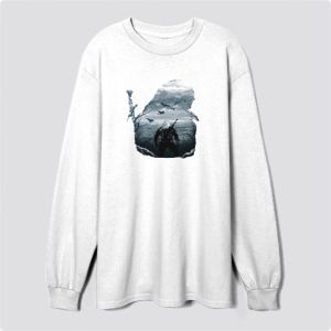 "Silent Sentinel" is a captivating Sweatshirt design featuring the silhouette of a lone warrior, blending seamlessly with a stormy mountain landscape. The muted colors and intricate details evoke a sense of mystery and adventure, making it perfect for fans of fantasy and epic journeys.