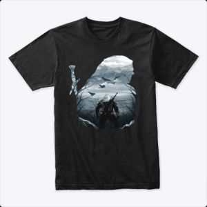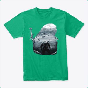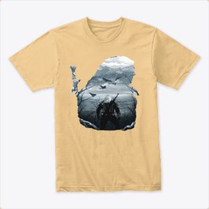 "Silent Sentinel" is a captivating T-shirt design featuring the silhouette of a lone warrior, blending seamlessly with a stormy mountain landscape. The muted colors and intricate details evoke a sense of mystery and adventure, making it perfect for fans of fantasy and epic journeys.