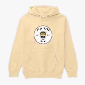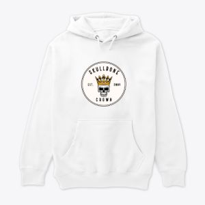 The "Skullbone Crown" logo was designed in 2004. The logo is a black and white circle with a gold crown on top. The crown is detailed with jewels and has a cross at the top. The center of the logo is a skull with a black outline and white fill. The skull has a golden crown on its head