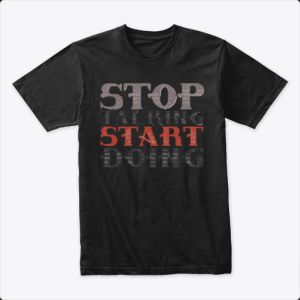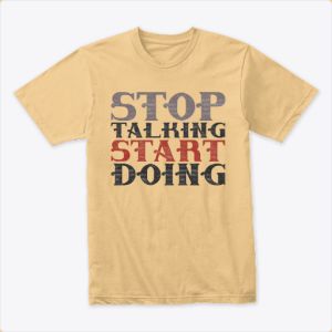 This design features a bold and motivational message, "Stop Talking, Start Doing," which serves as a call to action. The text is likely styled with dynamic fonts to emphasize the urgency and importance of taking action over mere words. The simplicity and power of the phrase create an impactful design, inspiring the wearer and those who see it to focus on productivity and determination. Perfect for those who value initiative and commitment to goals, this design sends a clear message about the power of action.