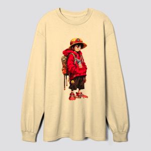 بلوزة لوفي هي قطعة أنيقة من الملابس مستوحاة من شخصية لوفي في سلسلة الرسوم المتحركة والمانغا الشهيرة ون بيس. تمثل هذه البلوزة توازنًا مثاليًا بين الأناقة والراحة، مما يجعلها مناسبة للارتداء اليومي أو في المناسبات غير الرسمية. تتميز البلوزة بتصميم عصري ومريح، حيث تتناغم القصة المسترخية مع تفاصيل مميزة. يتميز الياقة والأكمام والحاشية بتشطيب مضلع يضيف لمسة من الأناقة ويعزز مظهر البلوزة. كما أنها مصنوعة من مواد عالية الجودة توفر متانة وراحة على حد سواء. تحمل البلوزة تصميمًا جرافيكيًا فنيًا مستوحى من لوفي، سواء كانت صورة للشخصية أو رموز تعبيرية تعبيرية تميزها. يتميز الطبعات بألوان حية وتفاصيل دقيقة، مما يجعل البلوزة تبرز وتلفت الانتباه. بشكل عام، بلوزة لوفي تعد قطعة مميزة تمزج بين عشق المشجعين لشخصية لوفي واهتمامهم بالأزياء