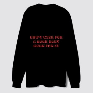 العنوان: إلهام اللياقة البدنية الوصف: هذه السترة أكثر من مجرد قطعة ملابس؛ إنه مصدر للتحفيز والتمكين لأي شخص في رحلة اللياقة البدنية. مصنوع من قماش عالي الجودة وجيد التهوية، يوفر هذا السويت شيرت الراحة والأناقة، مما يجعله الرفيق المثالي للتمرينات أو الملابس الكاجوال. يتميز الجزء الأمامي من السترة بطباعة جريئة وملفتة للنظر مع عبارات تحفيزية تتعلق باللياقة البدنية والنمو الشخصي. تم وضع كل عبارة في مكان استراتيجي لإلهام مرتديها والارتقاء به، وتذكيرهم بقوة المثابرة والتصميم في تحقيق أهداف اللياقة البدنية الخاصة بهم. من "ادفع حدودك" إلى "لا أعذار، نتائج فقط"، تعمل هذه العبارات بمثابة تذكير يومي للحفاظ على التركيز والانضباط والالتزام بالعيش بأسلوب حياة صحي ونشط. سواء كنت تذهب إلى صالة الألعاب الرياضية، أو تذهب للجري، أو ببساطة تتصدى لتحديات الحياة اليومية، فإن هذا السويت شيرت سيبقيك متحفزًا ومندفعًا لتكون أفضل ما لديك. متوفر بمجموعة متنوعة من المقاسات والألوان، هذا السويت شيرت مصمم ليناسب بشكل مريح وجذاب، مما يسمح لك بالتحرك بثقة وسهولة أثناء التمرينات. بفضل تصميمه الخالد ورسائله القوية، فهو أكثر من مجرد قميص من النوع الثقيل - إنه رمز للقوة والمرونة والسعي الدؤوب للتميز في اللياقة البدنية والحياة.