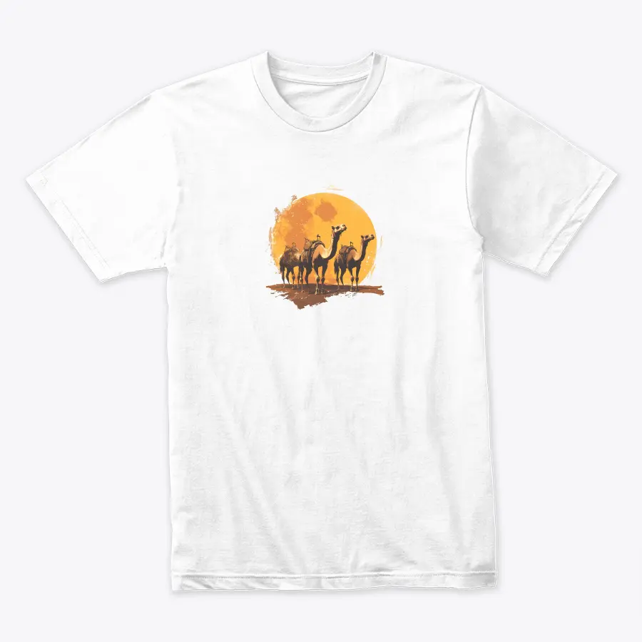 Capture the spirit of the Sahara with this Camel Caravan Merzouga T-shirt. Inspired by the golden dunes and timeless desert journeys, it features a minimalist design that brings the magic of Morocco to your wardrobe. Soft, breathable, and perfect for travelers, adventurers, and desert dreamers alike.