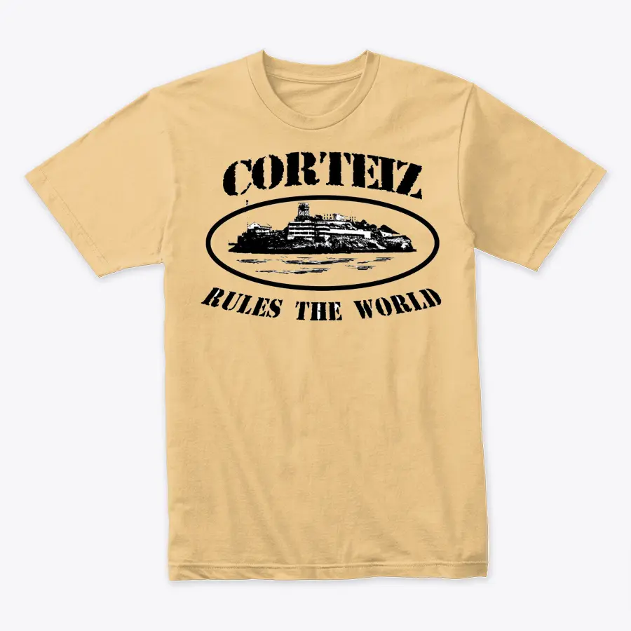 T-shirt streetwear casual مستوحى من ثقافة الزنقة العالمية، بتصميم “CORTEZ RULES THE WORLD” المطبوعة بجودة عالية. مصنوع من قطن نقي 100% كيعطي راحة وأناقة فكل استعمال. مناسب للستايل اليومي، الصيفي أو الشتوي تحت جاكيت.