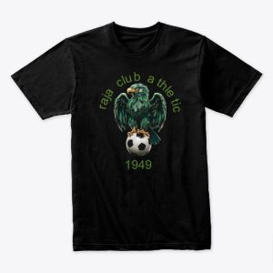 تصميم القميص يتميز بأناقة وبساطة تجسد روح نادي الرجاء الرياضي بأبهى صورها. يتوسط القميص شعار النادي مع الكتابة العريضة لاسم النادي فوق النسر بشكل مقوس و متناغم، مما يعطي للتصميم مظهرًا متوازنًا وجذابًا يتميز التصميم بأناقة في التفاصيل، مع توزيع متناسق للعناصر على القميص ليكونوا جزءًا من تجربة بصرية لافتة ومميزة. هذا التصميم يعكس الثقة والقوة والروح الرياضية لنادي الرجاء الرياضي، مما يجعله مثاليًا للاعبين والمشجعين على حد سواء.