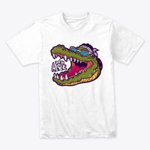 تيشرت مذهل يتميز بصورة تمساح بارزة، مع عبارة بارزة تقول "أنا هنا"، مصمم بإبداع ليعكس شخصيتك الفريدة وحضورك القوي.