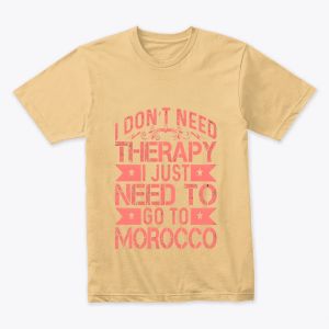 a bold typographic design expresses the sentiment i dont need therapy i just need to go to morocco combining humor and a love for travel