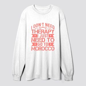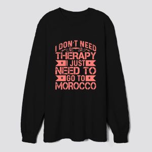 a bold typographic design expresses the sentiment i dont need therapy i just need to go to morocco combining humor and a love for travel