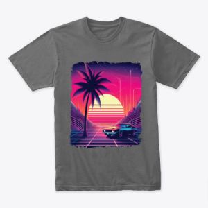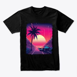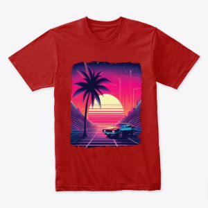 Tshirt - Sunset Drive: Retro Sunset with Vintage Car and Palm Trees - Women and Men - Gift