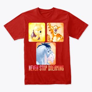 Bring positivity and childhood nostalgia together with this Never Stop Dreaming design featuring beloved classic friends — Pooh, Tigger, and Eeyore. A heartwarming reminder to stay hopeful, inspired, and joyful. Perfect for dreamers, Disney fans, and anyone who loves timeless encouragement.